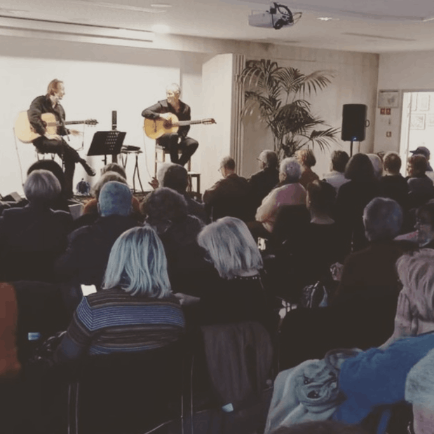 Mood Acoustic vous emmènera dans un voyage autour du monde à la découverte des grands standards de la musique brésilienne, du jazz des années soixantes, en passant par le blues et par des standards de la musique française et internationale, sans oublier leurs compositions originales à la saveur latine et espagnole. La guitare classique se mélange avec la guitare folk, pour vous emmener dans un voyage musical amusant, entraînant.